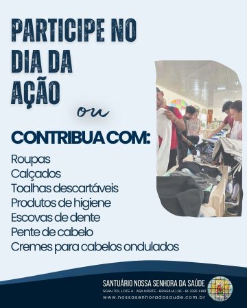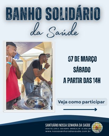 Notícias do Santuário › 02/03/2026 Banho Solidário Conteúdo relacionadoSolenidade de Nossa Senhora Aparecida no HranDurante o mês de janeiro de 2026Mutirões de Confissão do Setor IIIMissa com os Parlamentares e seus familiares