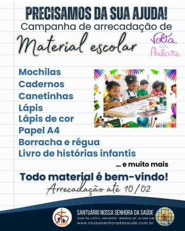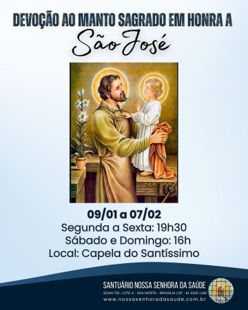 Calendário Acompanhe no calendário as nossas atividades e eventos. Mês atual janeiro, 2026 qui1 sex2 sá3 dom4 seg5 ter6 qua7 qui8 sex9 sá10 dom11 seg12 ter13 qua14 qui15 sex16 sá17 dom18 seg19 ter20 qua21 qui22 sex23 sá24 dom25 seg26 ter27 qua28 qui29 sex30 sá31 Devoção ao Manto Sagrado de São José 09janallday07fevDevoção ao Manto Sagrado de São José Detalhes Detalhes HorárioJaneiro 9 (Sexta) - Fevereiro 7 (Sábado) CalendárioGoogle Calendário Informações/Inscrições Catequese 2026 11janallday28fevInformações/Inscrições Catequese 2026 Detalhes Detalhes HorárioJaneiro 11 (Domingo) - Fevereiro 28 (Sábado) CalendárioGoogle Calendário Durante o mês de janeiro de 2026 12janallday31Durante o mês de janeiro de 2026 Detalhes Detalhes Horáriojaneiro 12 (Segunda) - 31 (Sábado) CalendárioGoogle Calendário Terço da Misericórdia 12janallday24fevTerço da Misericórdia Detalhes Detalhes HorárioJaneiro 12 (Segunda) - Fevereiro 24 (Terça) CalendárioGoogle Calendário Campanha de Arrecadação de Material Escolar 13janallday10fevCampanha de Arrecadação de Material Escolar Detalhes Detalhes HorárioJaneiro 13 (Terça) - Fevereiro 10 (Terça) CalendárioGoogle Calendário Encontro de Preparação para a Vida Matrimonial 16janallday31Encontro de Preparação para a Vida Matrimonial Detalhes Detalhes Horáriojaneiro 16 (Sexta) - 31 (Sábado) CalendárioGoogle Calendário