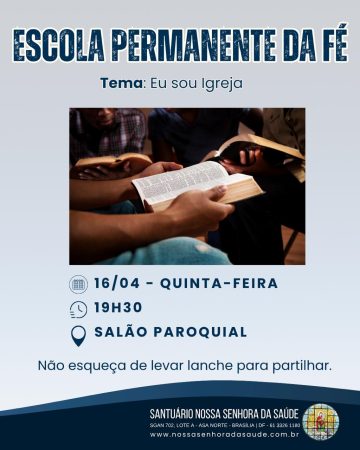 Notícias do Santuário › 13/04/2026 Escola Permanente da Fé Conteúdo relacionadoSanta Missa em Ação de GraçasMissa do Sagrado Coração de Jesus e da MisericórdiaMissa em Ação de Graças – 25 anos de dedicação da Paróquia Nossa Senhora da SaúdeAtendimento com o Padre – janeiro 2024