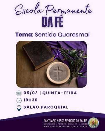 Sem categoria › 02/03/2026 Escola Permanente da Fé Conteúdo relacionadoSemana Nacional das FamíliasMissa Votiva em Honra a Santa TerezinhaQuaresma de São Miguel ArcanjoNova turma de Catequese Adulto