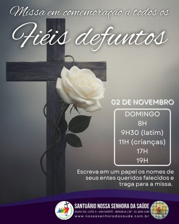 Notícias do Santuário › 22/10/2025 Finados Conteúdo relacionadoNatal dos Parlamentares – MissaMissa Votiva em Honra a Nossa Senhora da SaúdeFormação para os Catequistas – Escola de FéVia-Sacra e Santa Missa