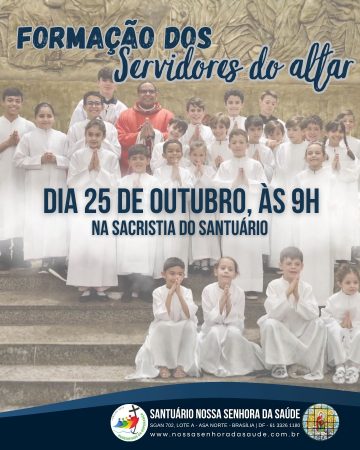 Notícias do Santuário › 22/10/2025 Formação Servidores do Altar Conteúdo relacionadoCenáculo com a relíquia de Santa GemmaMissa em Ação de Graças pelo 2º ano de ordenação presbiteral do Padre VanjaNovena de NatalCenáculo de Crianças