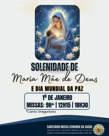Notícias do Santuário › 28/12/2025 Missas do dia 1° de janeiro de 2026 Conteúdo relacionadoJá fez Encontro de Casais com Cristo (ECC)?Escola de Formação Permanente – Vicariato Norte (Agosto)Palestra dia 22 de abrilFormação para Servidores do Altar – atuais e novos