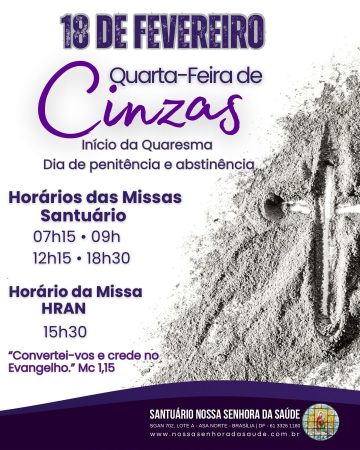 Sem categoria › 10/02/2026 Quarta-feira de Cinzas 2026 Conteúdo relacionadoNatal Solidário – Seja voluntárioSexta da CaridadeProgramação Completa Semana Santa 2024Spirituality of lent: preparation for easter