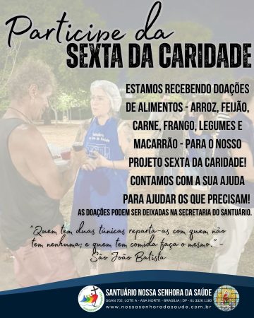 Notícias do Santuário › 22/10/2025 Sexta da Caridade Conteúdo relacionadoMissa em Honra a Nossa Senhora de LourdesSanta Missa com os parlamentares e seus familiaresSanta Missa com os parlamentares e seus familiaresDevoção das Mil Ave-Marias